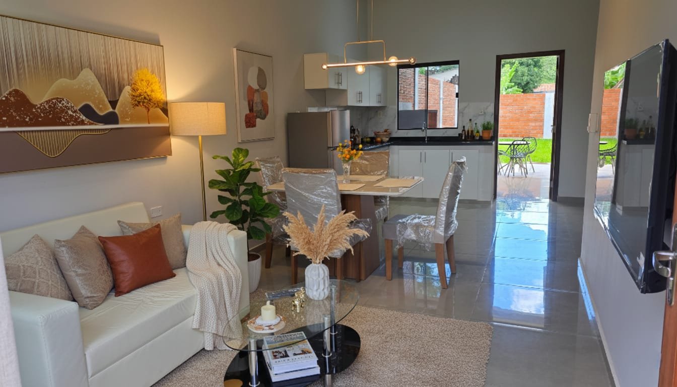 Situada en la ciudad de Capiatá a cinco minutos de la Ruta 2 Km 19 – Calle Boquerón este chalet ofrece la combinación perfecta de tranquilidad y conveniencia. Posee cuatro diseños arquitectónicos toscanos, moderno y funcional, con espacios abiertos que permiten la entrada de luz natural y una distribución que favorece la interacción familiar creando un ambiente acogedor para toda la familia.